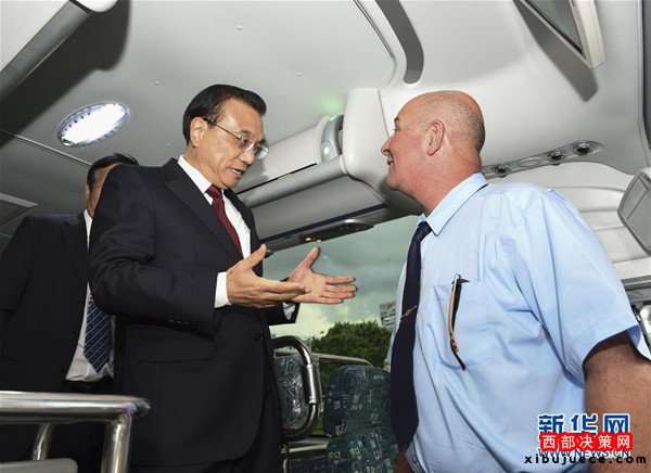 當(dāng)?shù)貢r間9月25日下午,國務(wù)院總理李克強在古巴首都哈瓦那體驗中國出口的宇通客車,考察中國裝備“走出去”情況。