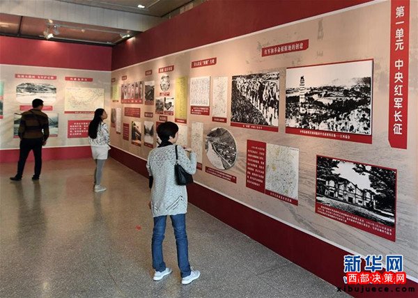10月8日,參觀者在甘肅省博物館觀看主題展覽。當日,甘肅省紀念紅軍長征勝利80周年主題展覽在甘肅省博物館開展。展覽以“弘揚長征精神堅定理想信念”為主題,展示紅軍長征的光輝歷史,展現了紅軍長征的光輝征程。