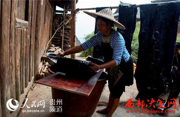 獨特文化:苗族婦女制“亮布”涂上蛋清做新衣