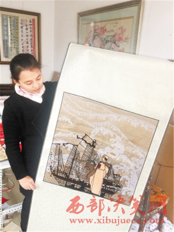 憑借著一幅《鄭和下西洋》的七彩剪紙,楊啟慧上個月獲得了第二屆中國(張家港)長江流域民間藝術(shù)“金菊獎”金獎。