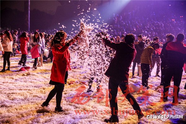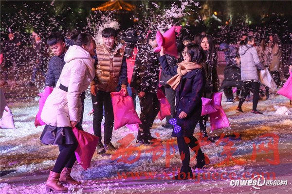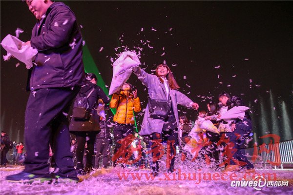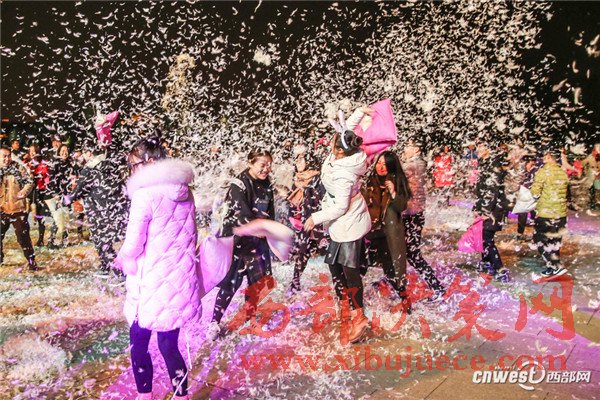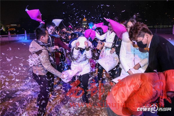 12月24日是西方傳統(tǒng)節(jié)日平安夜,風(fēng)靡全球的“枕頭大戰(zhàn)”在西安大唐芙蓉園舉行,眾多青年男女相聚于此,拋卻煩惱與壓力,火熱“開戰(zhàn)”,歡樂與羽毛齊飛。