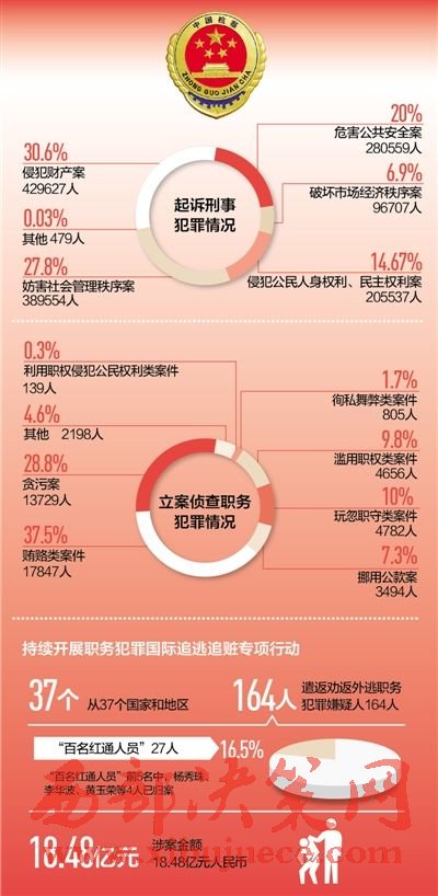 去年一年,檢察機(jī)關(guān)共立案偵查職務(wù)犯罪47650人,其中包括21名原省部級干部,對令計劃、蘇榮等48名原省部級以上干部提起公訴。檢察機(jī)關(guān)繼續(xù)開展集中整治和加強(qiáng)預(yù)防扶貧領(lǐng)域職務(wù)犯罪專項工作,查辦相關(guān)職務(wù)犯罪1892人,同比增長102.8%。此外,還在征地拆遷、社會保障等民生領(lǐng)域查辦“蠅貪”“蟻貪”17410人。