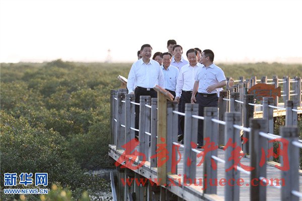 4月19日至21日,中共中央總書記、國家主席、中央軍委主席習近平在廣西考察。這是4月19日傍晚,習近平來到北海金海灣紅樹林生態(tài)保護區(qū)考察。(記者 謝環(huán)馳 攝)