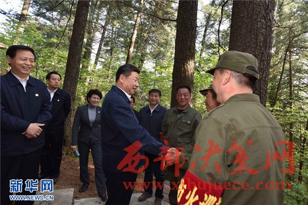 2016年5月23日至25日,中共中央總書記、國家主席、中央軍委主席習近平在黑龍江考察調(diào)研。這是5月23日下午,習近平在上甘嶺林業(yè)局溪水國家森林公園視察時,叮囑林場工作人員一定要把森林資源保護好。(記者 李濤 攝)