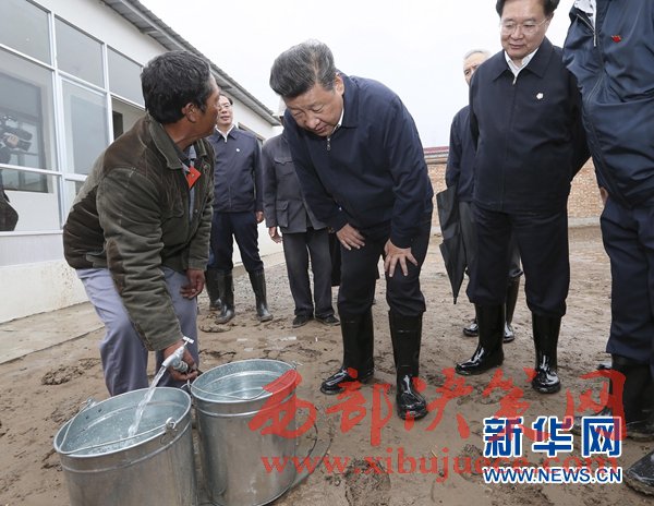 2016年8月22日至24日,中共中央總書記、國家主席、中央軍委主席習近平在青海調(diào)研考察。這是8月23日上午,習近平在海東市互助土族自治縣五十鎮(zhèn)班彥村村民呂有章的新家了解自來水使用情況。 (記者 蘭紅光 攝)
