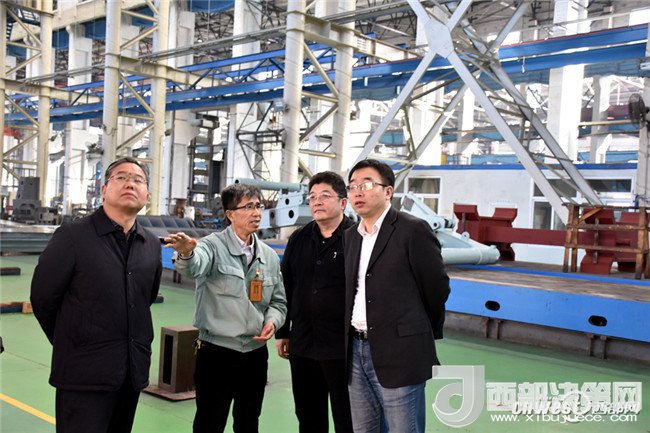 西安工業(yè)大學(xué)黨委副書記于孟晨、西安工業(yè)大學(xué)副校長張守華在中冶陜壓重工車間實地考研。