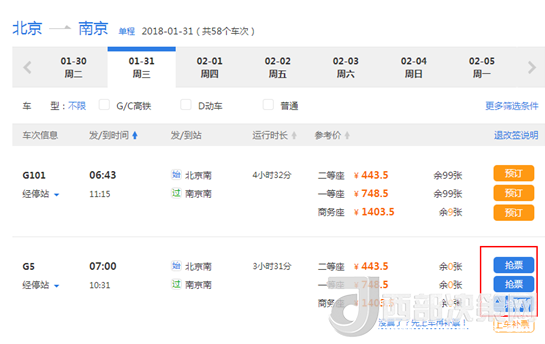 攜程平臺(tái)搶票截圖