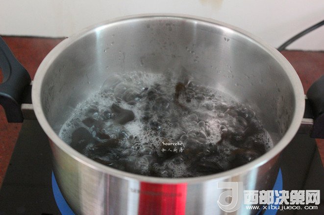 5.清水煮沸,放入木耳汆燙熟撈出;