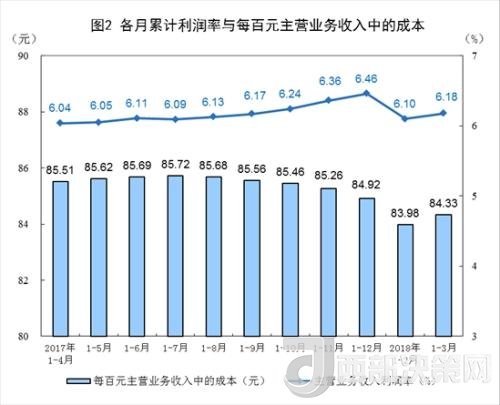 1-3月份,規(guī)模以上工業(yè)企業(yè)實(shí)現(xiàn)主營(yíng)業(yè)務(wù)收入25.2萬(wàn)億元,同比增長(zhǎng)9.6%;發(fā)生主營(yíng)業(yè)務(wù)成本21.2萬(wàn)億元,增長(zhǎng)9.4%;主營(yíng)業(yè)務(wù)收入利潤(rùn)率為6.18%,同比提高0.11個(gè)百分點(diǎn)。
