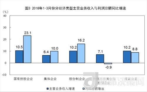 統(tǒng)計(jì)局?jǐn)?shù)據(jù)顯示,1-3月份,規(guī)模以上工業(yè)企業(yè)中,國(guó)有控股企業(yè)實(shí)現(xiàn)利潤(rùn)總額4762.9億元,同比增長(zhǎng)23.1%;集體企業(yè)實(shí)現(xiàn)利潤(rùn)總額57.3億元,增長(zhǎng)10%;股份制企業(yè)實(shí)現(xiàn)利潤(rùn)總額10889.3億元,增長(zhǎng)16.2%;外商及港澳臺(tái)商投資企業(yè)實(shí)現(xiàn)利潤(rùn)總額3738億元,下降0.9%;私營(yíng)企業(yè)實(shí)現(xiàn)利潤(rùn)總額4316.8億元,增長(zhǎng)8.8%。