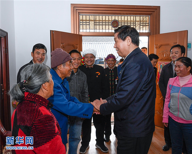 11月28日至12月1日,中共中央政治局常委、全國(guó)人大常委會(huì)委員長(zhǎng)栗戰(zhàn)書(shū)在云南就制定基本醫(yī)療衛(wèi)生與健康促進(jìn)法開(kāi)展立法調(diào)研。這是11月30日,栗戰(zhàn)書(shū)在云南省德宏傣族景頗族自治州瑞麗市戶育鄉(xiāng)戶育村,走進(jìn)村民家中嘮家常、問(wèn)收入、聊致富。 新華社記者 申宏 攝
