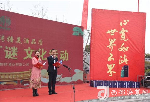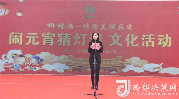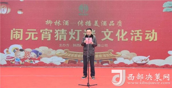 陜西柳林酒業(yè)有限公司副總經(jīng)理周峰發(fā)表講話并向鳳翔父老送上新春祝福和節(jié)日的問候。“三陽開國泰,美哉柳林酒。今天是正月十五,首先我代表柳林酒業(yè)董事長付小銅先生、總經(jīng)理柳林先生及全體員工給現(xiàn)場的父老鄉(xiāng)親、朋友們拜個晚年,祝各位家庭好、事業(yè)好、身體好心情好、運氣好、福氣好、財氣好、愛情好、朋友好、新的一年一切都好!柳林酒業(yè)主辦的以傳播柳林美酒品質(zhì)為主題的“鬧元宵有獎猜燈謎文化活動”,在此,對前來的各位父老鄉(xiāng)親,各界朋友表示衷心的感謝。本次猜謎活動獎品總價值15萬元,共設(shè)1000條謎語,只要猜中謎底,關(guān)注“柳林酒業(yè)”,即可獲得獎品?,F(xiàn)場更有國家級評酒大師親臨現(xiàn)場,品柳林美酒,共同傳播美酒文化和歌舞表演環(huán)節(jié),相信大家一定會不虛此行,度過一個難忘的元宵佳節(jié)。