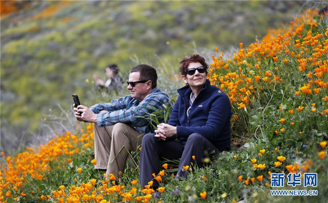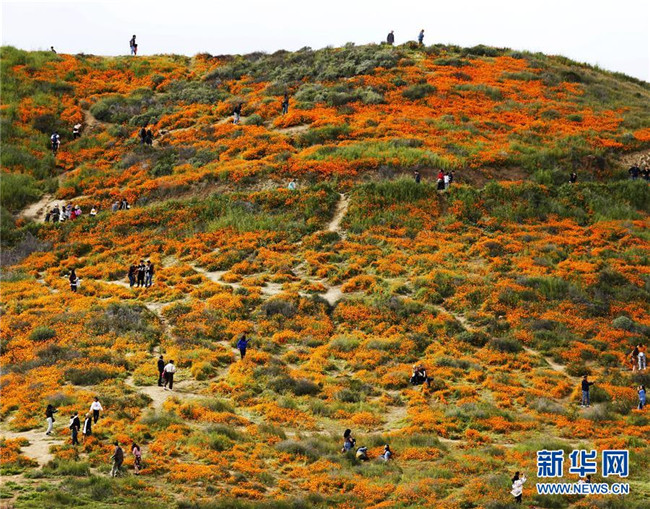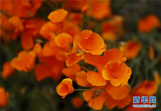 近日,美國(guó)加利福尼亞州埃爾西諾湖地區(qū)的山花競(jìng)相綻放,成片的花海顯得格外壯觀。 新華社記者李穎攝