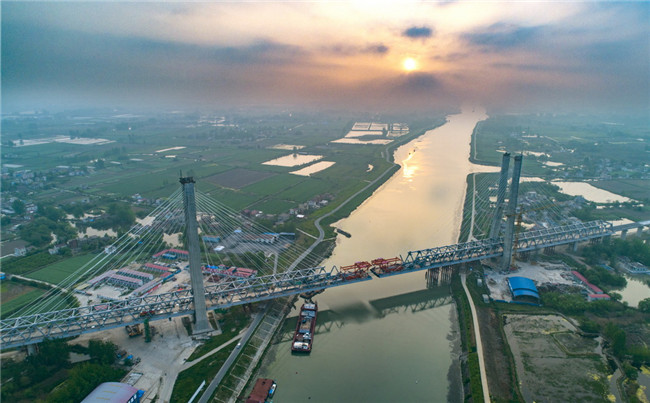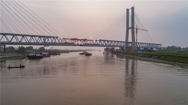 世界最大跨度無砟軌道高速鐵路橋梁——商合杭鐵路裕溪河特大橋順利合龍