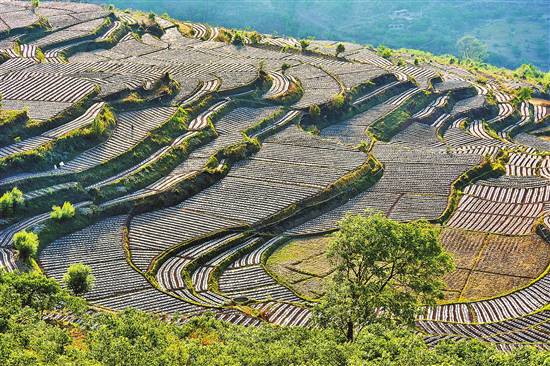 近日,南澗彝族自治縣南澗鎮(zhèn)白云村的烤煙大田移栽基本完成,一片片梯田構(gòu)成了一幅美麗的畫(huà)卷。南澗縣今年將進(jìn)一步加大科技種植、科技管理力度,力爭(zhēng)實(shí)現(xiàn)烤煙生產(chǎn)提質(zhì)增效。本報(bào)通訊員 適志宏 攝