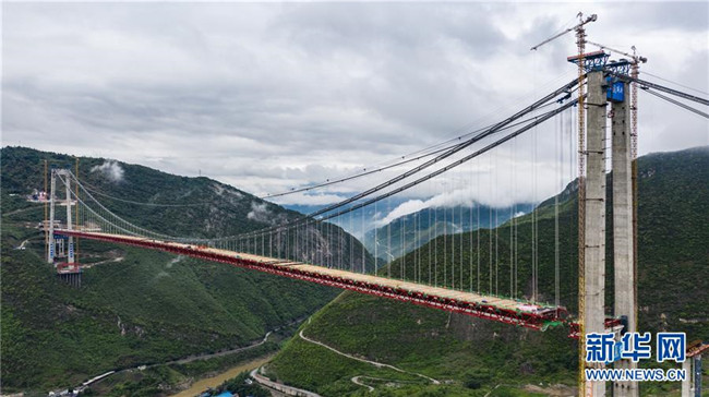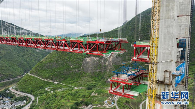 正在拼裝最后一片鋼桁梁的赤水河大橋(5月30日無人機拍攝)。 新華社記者 陶亮 攝