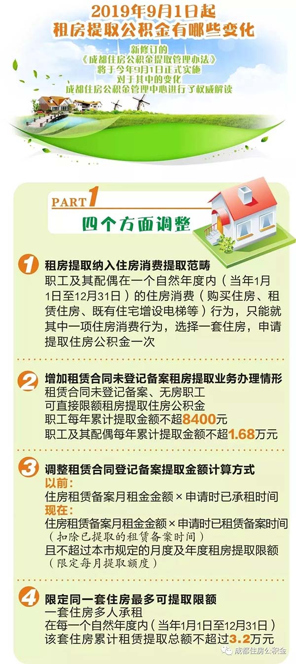 新修訂的《成都住房公積金提取管理辦法》在租房提取方面有哪些變化?申請租房提取的條件是什么?租房提取可提取的額度是多少?今日,成都住房公積金管理中心對相關(guān)問題進行了梳理解答。