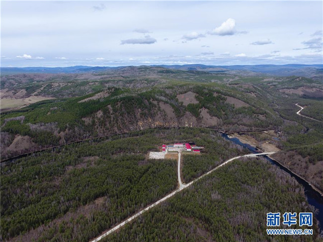 這是奇乾中隊(duì)的營(yíng)地,距離最近的城鎮(zhèn)約150公里,被稱為“林海孤島”(5月19日無人機(jī)拍攝)。新華社記者 劉磊 攝