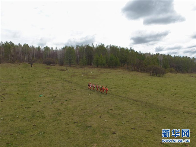 奇乾中隊(duì)消防隊(duì)員進(jìn)行晨練(5月15日無人機(jī)拍攝)。新華社記者 劉磊 攝