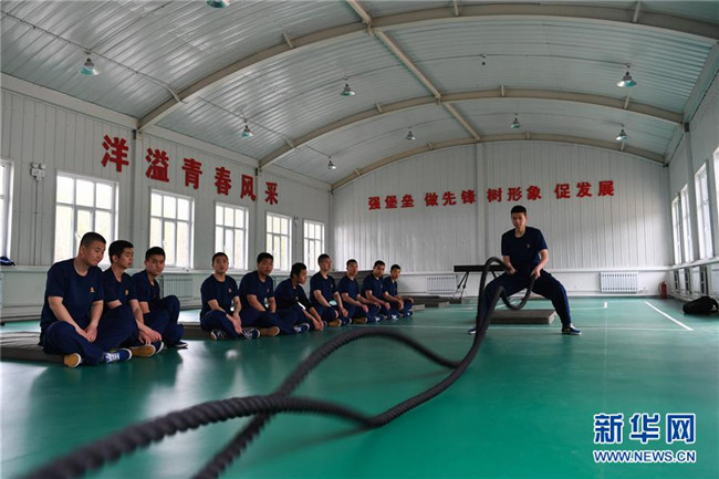 奇乾中隊(duì)的消防隊(duì)員在營(yíng)地室內(nèi)訓(xùn)練(5月16日攝)。新華社記者 劉磊 攝