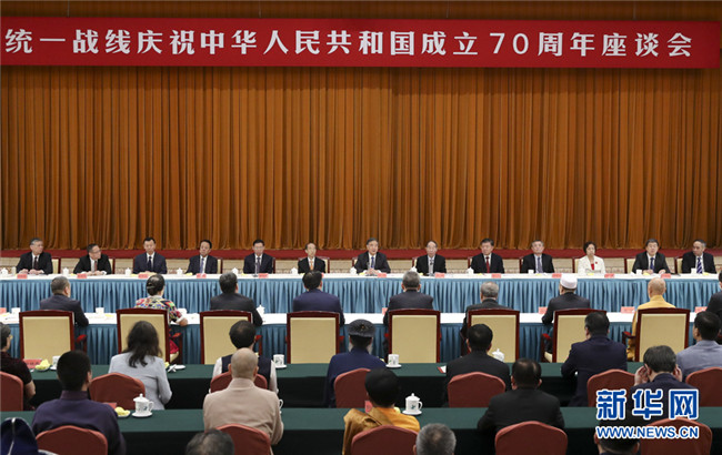 統(tǒng)一戰(zhàn)線慶祝中華人民共和國成立70周年座談會11日在京召開。中共中央政治局常委、全國政協(xié)主席汪洋出席會議并講話。他強調(diào),統(tǒng)一戰(zhàn)線是中國共產(chǎn)黨領(lǐng)導(dǎo)的廣泛政治聯(lián)盟,具有鮮明的中國特色,過去是、現(xiàn)在是、今后仍然是黨的事業(yè)取得勝利的重要法寶。要以習(xí)近平新時代中國特色社會主義思想為指導(dǎo),深入學(xué)習(xí)貫徹習(xí)近平總書記關(guān)于加強和改進統(tǒng)一戰(zhàn)線工作的重要思想,切實把中共中央對統(tǒng)一戰(zhàn)線的決策部署落實下去、把廣大統(tǒng)一戰(zhàn)線成員的智慧力量凝聚起來,為實現(xiàn)中華民族偉大復(fù)興的中國夢共同奮斗。