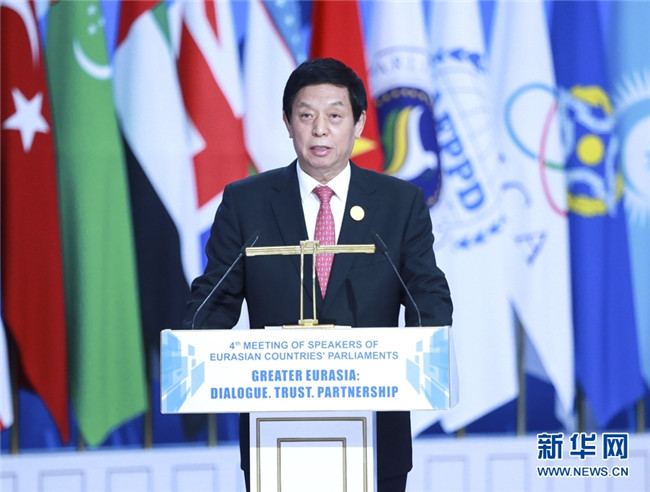 第四屆歐亞國(guó)家議長(zhǎng)會(huì)議24日在哈薩克斯坦首都努爾蘇丹舉行。全國(guó)人大常委會(huì)委員長(zhǎng)栗戰(zhàn)書(shū)出席會(huì)議開(kāi)幕式并作主旨發(fā)言。