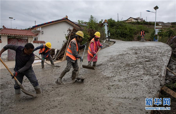四川路橋公司的工人在金陽縣依達(dá)鄉(xiāng)保爾村對破損路面進(jìn)行整治(6月5日攝)。坐落在金沙江畔的四川省金陽縣是國家級深度貧困縣,境內(nèi)群山連綿起伏,海拔落差大,眾多村寨處于高山或者高半山上,道路施工難度大。近年來,當(dāng)?shù)卣畬⒔煌ㄗ鳛槊撠毠缘南葘?dǎo)性工程,路越修越寬、越修越好,成為當(dāng)?shù)厝罕姷拿撠氈赂宦?。截?019年底,金陽縣實現(xiàn)所有鄉(xiāng)鎮(zhèn)通油路、建制村通硬化路,鄉(xiāng)道里程達(dá)329.9公里,村道里程達(dá)866.8公里。新華社記者江宏景攝