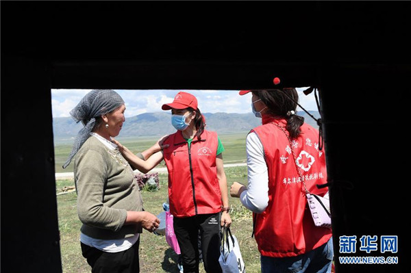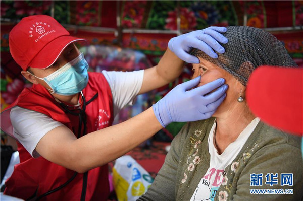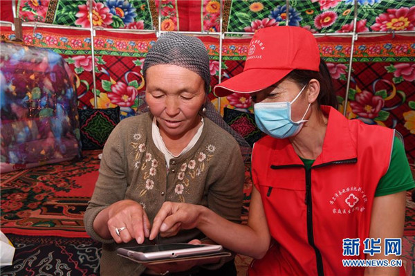 6月20日,新疆阿勒泰地區(qū)布爾津縣也格孜托別鄉(xiāng)克孜勒托蓋村村醫(yī)在布爾津縣黑流灘草原給牧民巴合提古麗·塔拉甫汗檢查身體。圍繞實(shí)現(xiàn)人人享有基本醫(yī)療衛(wèi)生服務(wù)目標(biāo),2016年起,新疆布爾津縣開展家庭醫(yī)生簽約服務(wù)工作。該縣組建家庭醫(yī)生簽約團(tuán)隊(duì)65個(gè),團(tuán)隊(duì)醫(yī)務(wù)人員233名,通過手機(jī)APP、基本公衛(wèi)系統(tǒng)與全縣建檔立卡貧困戶進(jìn)行電子化簽約,提升村醫(yī)隨訪的工作效率和質(zhì)量。截至目前,已完成簽約42936人,履約40043人。新華社記者沙達(dá)提攝