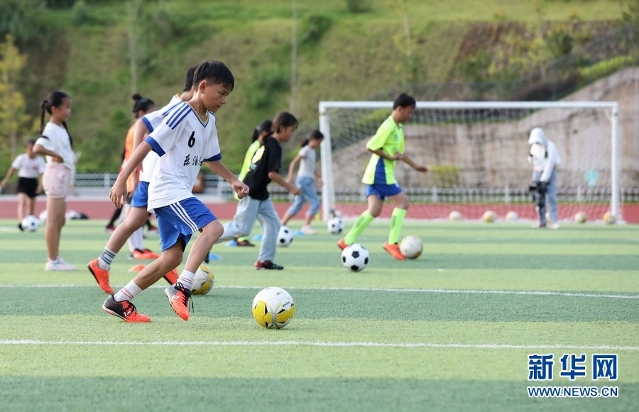 學(xué)生們在三江侗族自治縣古宜鎮(zhèn)江川小學(xué)訓(xùn)練足球。