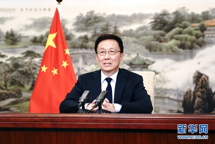 11月10日,博鰲亞洲論壇國際科技與創(chuàng)新論壇首屆大會開幕式在澳門舉行。中共中央政治局常委、國務(wù)院副總理韓正以視頻方式發(fā)表主旨演講?!⌒氯A社記者 丁林 攝