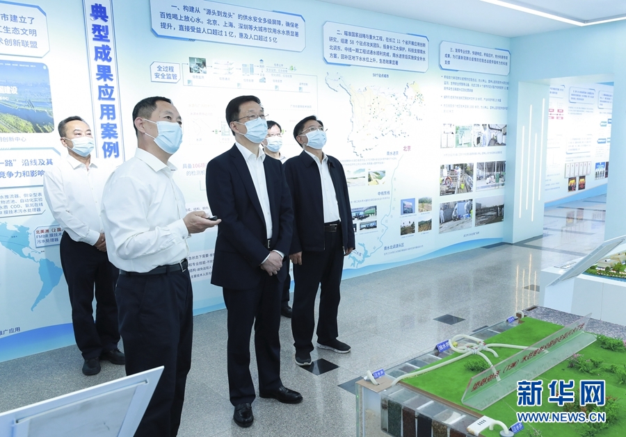 5月18日,中共中央政治局常委、國務(wù)院副總理韓正在中國環(huán)境科學(xué)研究院主持召開座談會。這是會前,韓正聽取水體污染控制與治理科技重大專項成果展示匯報。新華社記者 龐興雷 攝