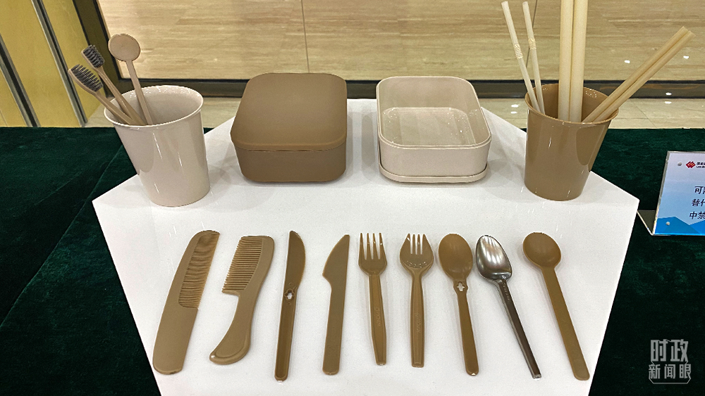 △榆林化工生產(chǎn)的可降解一次性用品,可替代“禁塑名錄”中禁止使用的產(chǎn)品。(總臺(tái)央視記者李輝拍攝)