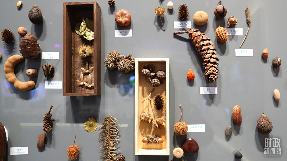 △會展中心,云南生物多樣性保護(hù)實(shí)踐與成果展展廳的種子墻。(圖/視覺中國)
