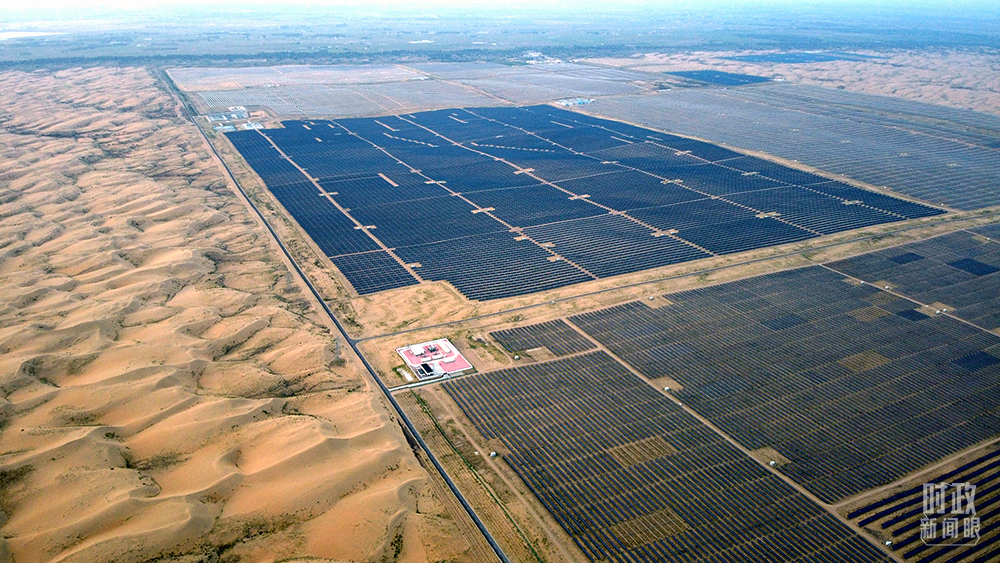 △內(nèi)蒙古鄂爾多斯,達(dá)拉特旗光伏發(fā)電領(lǐng)跑獎勵基地,是全球最大的沙漠集中式光伏電站。(圖/視覺中國)