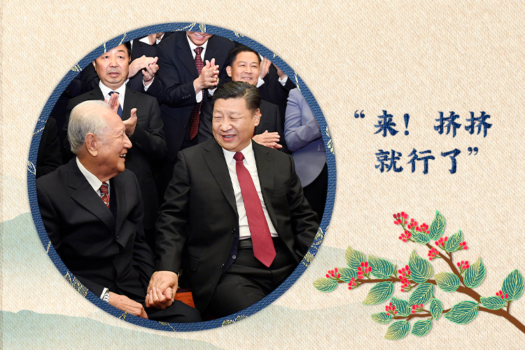 總書(shū)記拉著他們的手,請(qǐng)兩位老人坐到自己身邊來(lái),兩人執(zhí)意推辭,總書(shū)記一再邀請(qǐng):“來(lái)!擠擠就行了,就這樣。”自然而然的舉動(dòng),正是總書(shū)記尊老敬賢的真情流露。