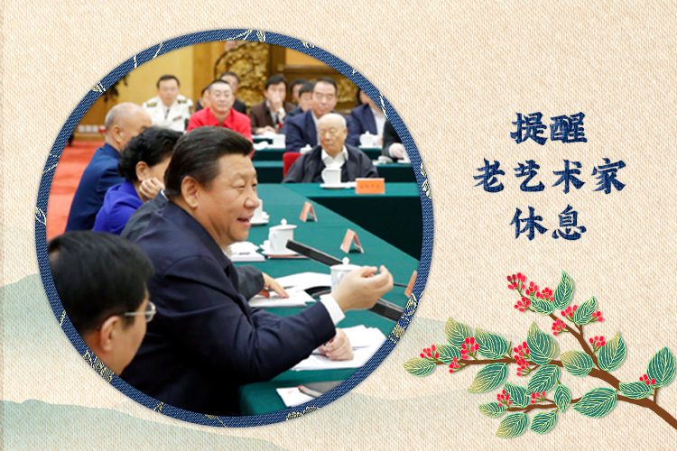 2014年10月15日,習(xí)近平總書(shū)記主持召開(kāi)文藝工作座談會(huì),媒體捕捉到這樣一個(gè)現(xiàn)場(chǎng)細(xì)節(jié)。當(dāng)文藝界代表們發(fā)言結(jié)束,總書(shū)記準(zhǔn)備發(fā)表講話時(shí),他望了望90歲高齡的中國(guó)紅樓夢(mèng)學(xué)會(huì)名譽(yù)會(huì)長(zhǎng)馮其庸先生,隨后對(duì)大家說(shuō):“今天出席座談會(huì)的不少老藝術(shù)家年事已高,大家如果累了,就到休息室休息或者走動(dòng)走動(dòng)。”