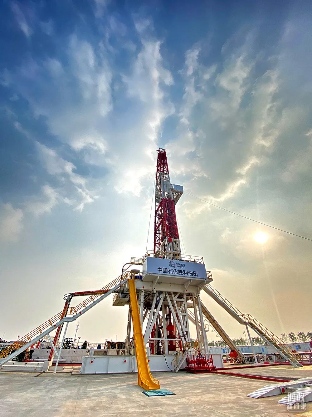 △勝利油田萊113區(qū)塊的鉆井平臺。(總臺央視記者郭曉龍拍攝)
