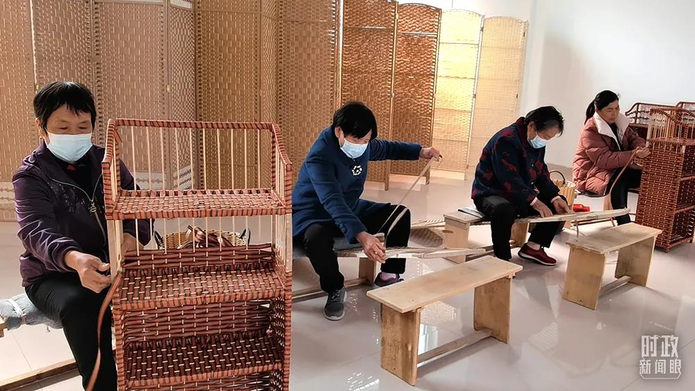 △楊廟社區(qū)成立草編合作社,老年人通過手工編織屏風、鞋架等實現(xiàn)在家門口就業(yè)。(總臺央視記者楊松濤拍攝)
