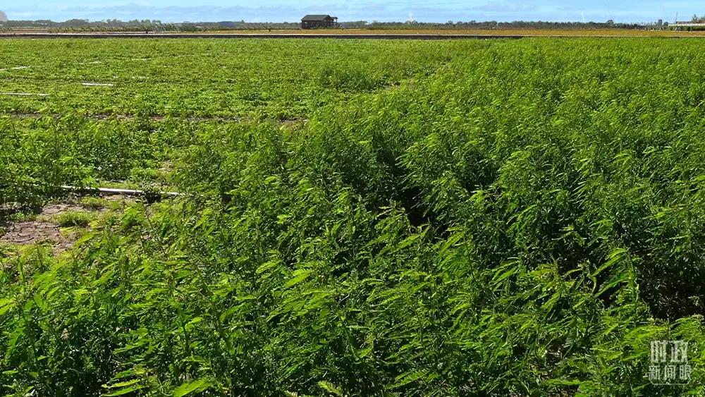 △黃河三角洲農(nóng)高區(qū)。田菁是耐鹽堿綠肥作物,能夠促進鹽堿地用養(yǎng)結合。(總臺記者韓森拍攝)