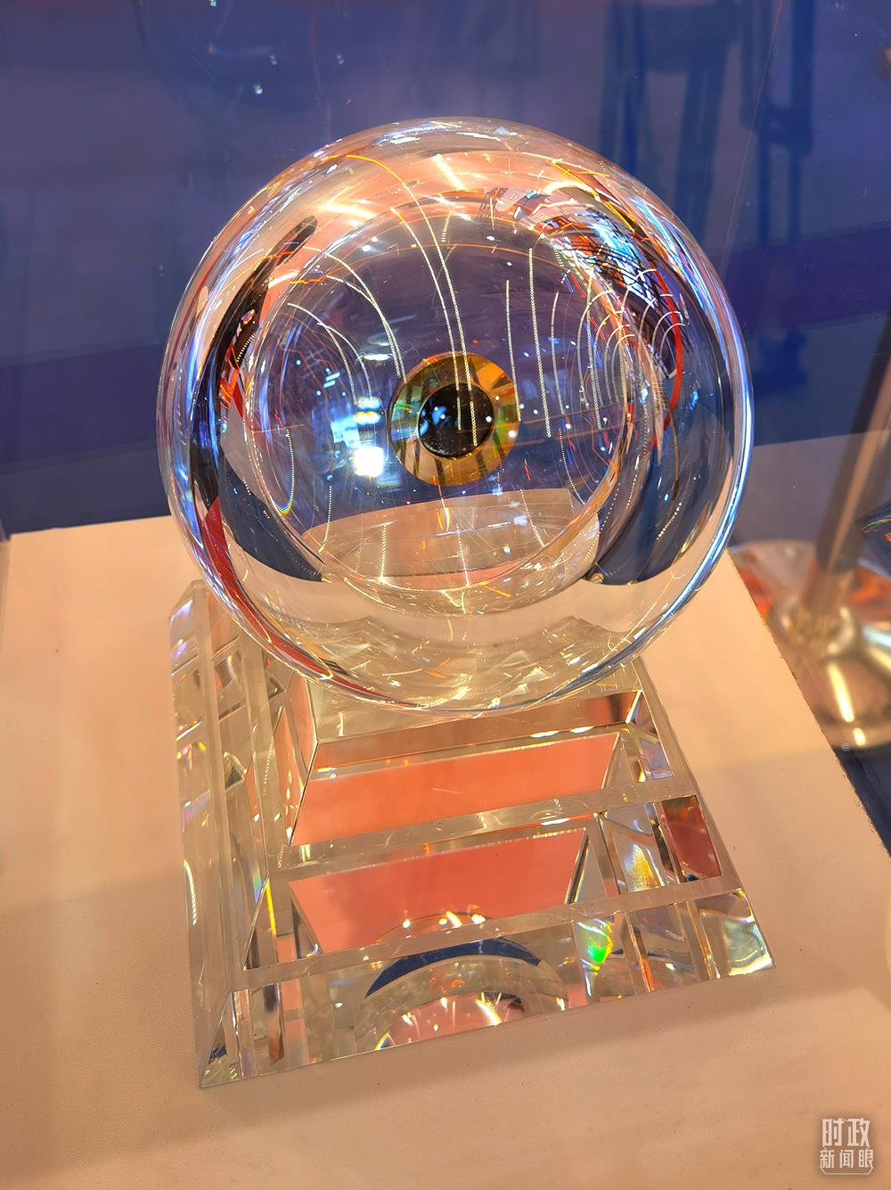 △“九章”量子計算原型機模型。它處理“高斯玻色取樣”的速度比超級計算機快一百萬億倍,也就是說“九章”一分鐘完成的任務(wù),超級計算機需要一億年。(總臺央視記者范一鳴拍攝)