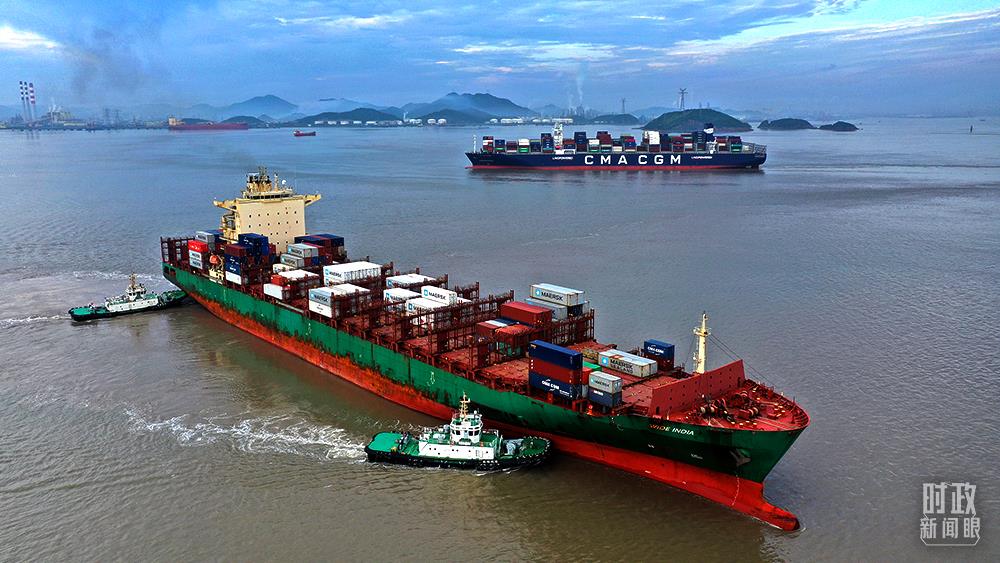 △2021年6月,浙江舟山港。輪載貨物將被運(yùn)往尼日利亞、馬來西亞、新加坡等“一帶一路”沿線國家。(圖/視覺中國)