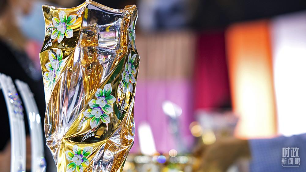 △2021年中國服貿(mào)會(huì),孟加拉國展臺(tái)展示的一款玻璃花瓶。(圖/視覺中國)