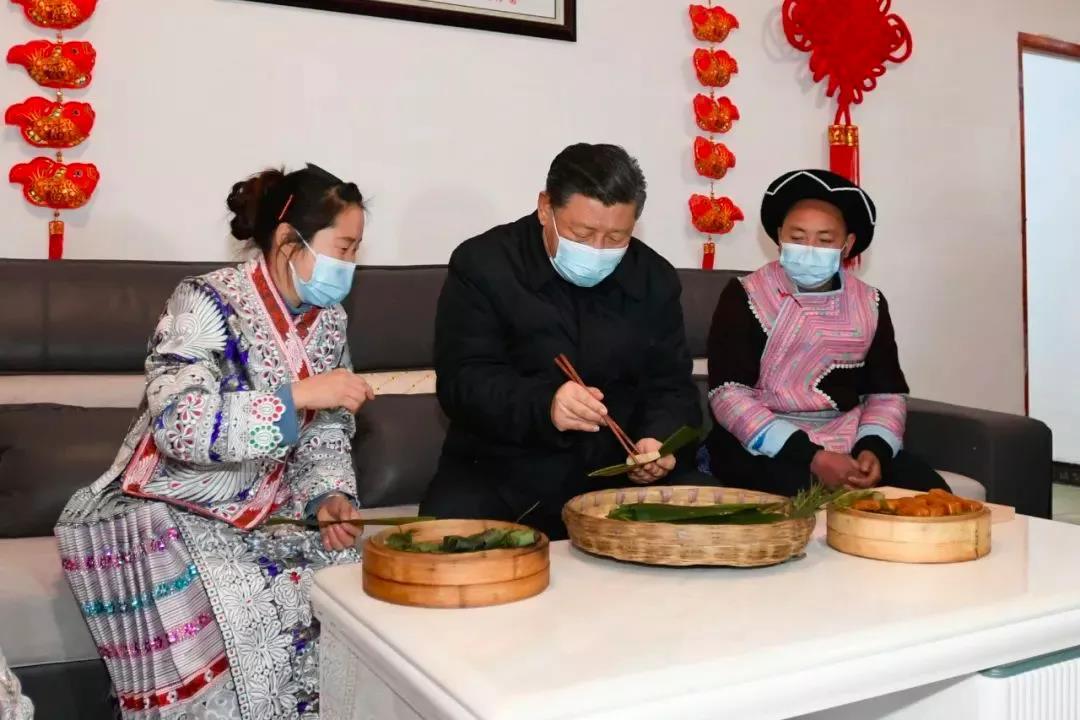 農(nóng)歷牛年春節(jié)前夕,習(xí)近平總書記赴貴州看望慰問各族干部群眾。在苗族村民趙玉學(xué)家,習(xí)近平總書記仔細(xì)察看生活居住環(huán)境,并同趙玉學(xué)一家制作當(dāng)?shù)貍鹘y(tǒng)節(jié)日食品黃粑,聊起了家常。