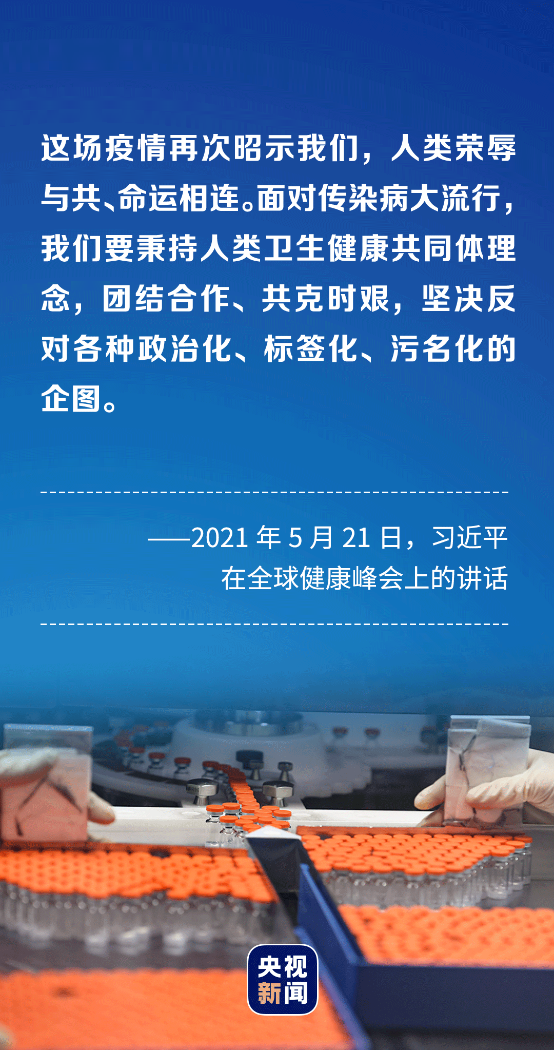 “疫情再次證明,我們生活在一個地球村,各國休戚相關(guān)、命運與共。我們必須團結(jié)合作、共克時艱,共同守護人類健康美好未來。”