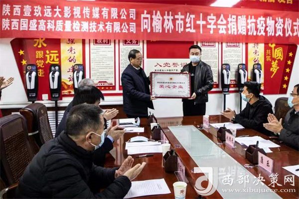 西部決策網(wǎng)訊 12月17日,榆林市政府會(huì)議室舉行疫情防控捐贈(zèng)儀式,我市兩家愛心企業(yè)向市委、市政府、榆林市紅十字會(huì)捐贈(zèng)抗疫物資,本次活動(dòng)有榆林市副市長楊東明、市政府副秘書長崔紅軍、市紅十字會(huì)專職副會(huì)長惠斌、市衛(wèi)健委疾控科科長高婷婷、陜西國盛高科質(zhì)量檢測技術(shù)有限公司總經(jīng)理王蕾蕾、陜西壹玖遠(yuǎn)大影視傳媒有限公司總經(jīng)理康樂、北京泛亞智庫國際咨詢中心鄉(xiāng)村振興部部長兼陜西壹玖遠(yuǎn)大影視傳媒有限公司高級(jí)顧問劉團(tuán)元,市紅十字會(huì)全體人員參加,市衛(wèi)健委黨組書記、主任高懷和主持。市政府副秘書長崔紅軍、市紅十字會(huì)專職副會(huì)長惠斌、市衛(wèi)健委黨組書記、主任高懷和主持、副市長楊東明和市政府副秘書長崔紅軍出席并向捐贈(zèng)企業(yè)頒發(fā)愛心企業(yè)獎(jiǎng)牌。