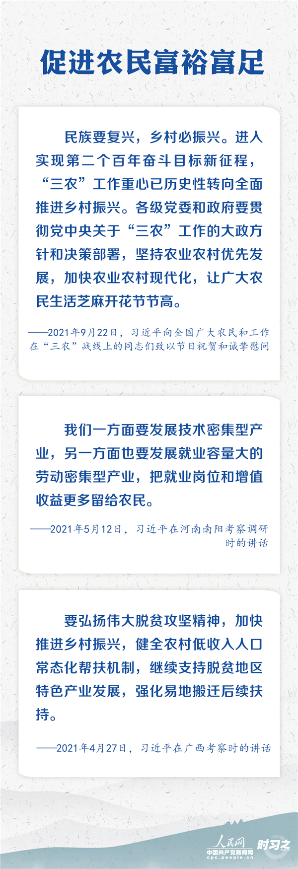 “十四五”開局之年,習(xí)近平赴地方考察調(diào)研及參加座談會時,多次發(fā)表重要講話、作出重要指示,始終引領(lǐng)著“三農(nóng)”工作的重心與方向。