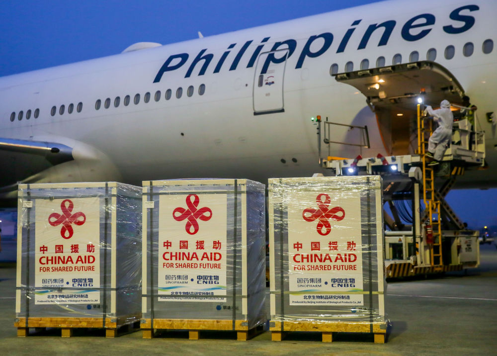 ↑2021年8月20日,中國(guó)政府援助的第三批新冠疫苗運(yùn)抵菲律賓首都馬尼拉。