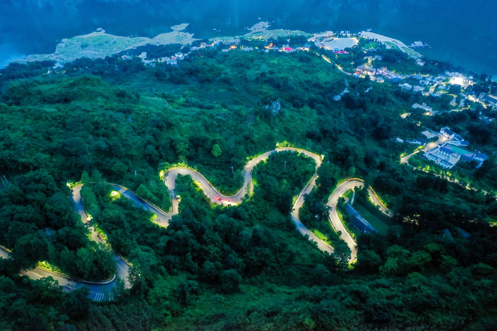 ↑2021年12月30日拍攝的張家口賽區(qū)國(guó)家越野滑雪中心的夜景(無(wú)人機(jī)照片)。