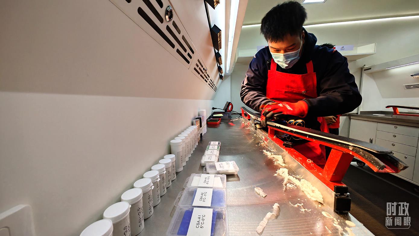 △工作人員正在給雪板上蠟。目前國內(nèi)的雪蠟聯(lián)合攻關(guān)團(tuán)隊正在研制更適合大眾群體使用的液體雪蠟。(總臺央視記者彭漢明拍攝)