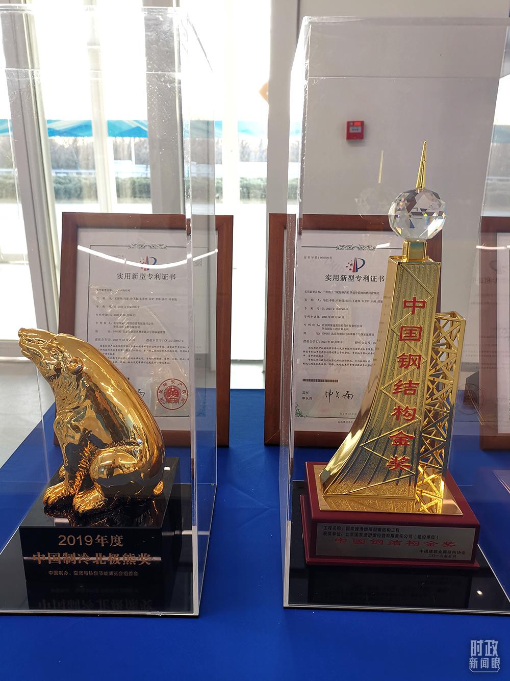 △2019年,“冰絲帶”分別榮獲中國制冷北極熊獎和中國鋼結(jié)構(gòu)金獎。(總臺央視記者楊立峰拍攝)